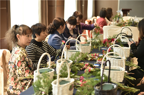 3月8日下午,公司工會在曲江國際飯店建國廳組織開展“建功十周年,巾幗綻芳華”插花送照片活動,特邀花藝老師給大家從選花、裁剪、顏色搭配、造型等方面講授插花技巧。