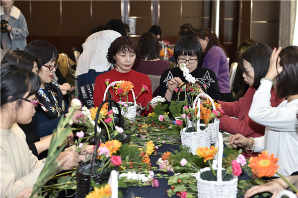 在老師的指導下,大家開始修剪枝葉、編綠葉、擺造型……一支支嬌艷欲滴的鮮花通過大家精妙的構思搭配,不一會就變成一籃藍精美的花藝作品。活動現場花香四溢、滿室芬芳,大家與花相伴,歡聲笑語,度過了一個開心快樂的節日。